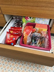 なので、娘はおやつの時間になると、自分でこの引き出しを覗き込み、その日食べたいものを自分で選んで食べることができます🙌🏻