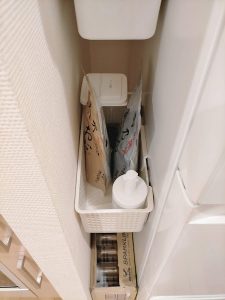 入れ物はマグネット付きのダイソーのかご(400円)です。