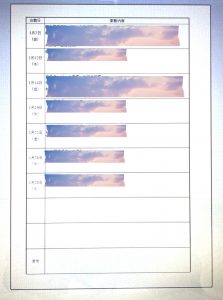 自分の仕事の日とやることを表にしただけ。