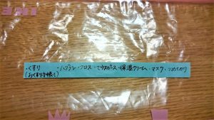 小物(薬やグルーミンググッズなど)を入れるジップロックに中身を記載します。