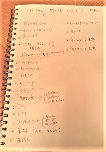 ①パッキングをするたびに、ノートに持ち物リストを書きためていく。